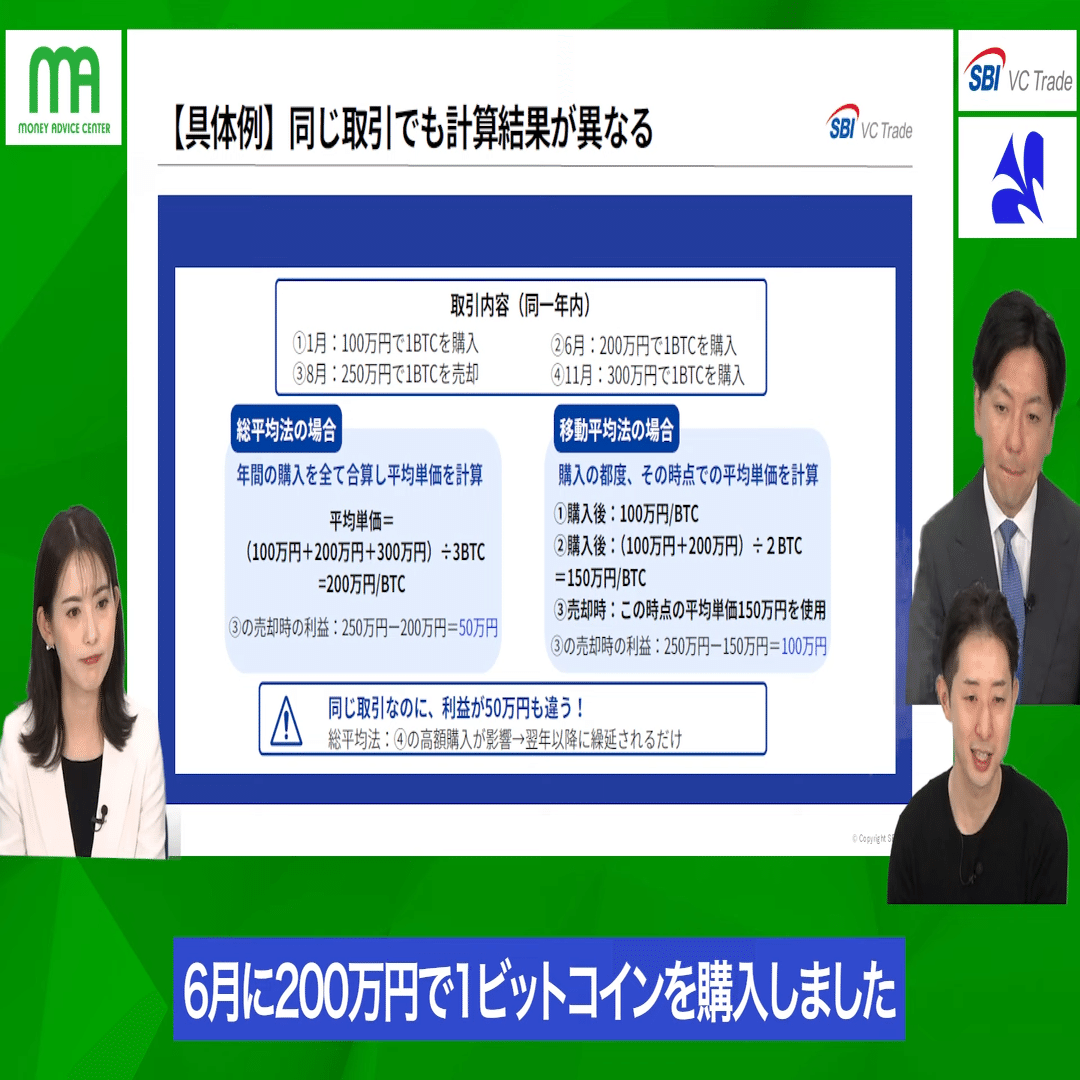 「えっ、じゃあ利益が少なくなる『総平均法』の方がお得じゃん!」 直感的にそう思うかもしれませんが、話はそう単純ではありません。 米満先生の解説によると、「長期的(暗号資産をすべて売り切ったとき)に見れば、トータルの利益額は同じになる」のです。 あくまで、利益が「今年出るか」「将来に先送りされるか」の違いです。