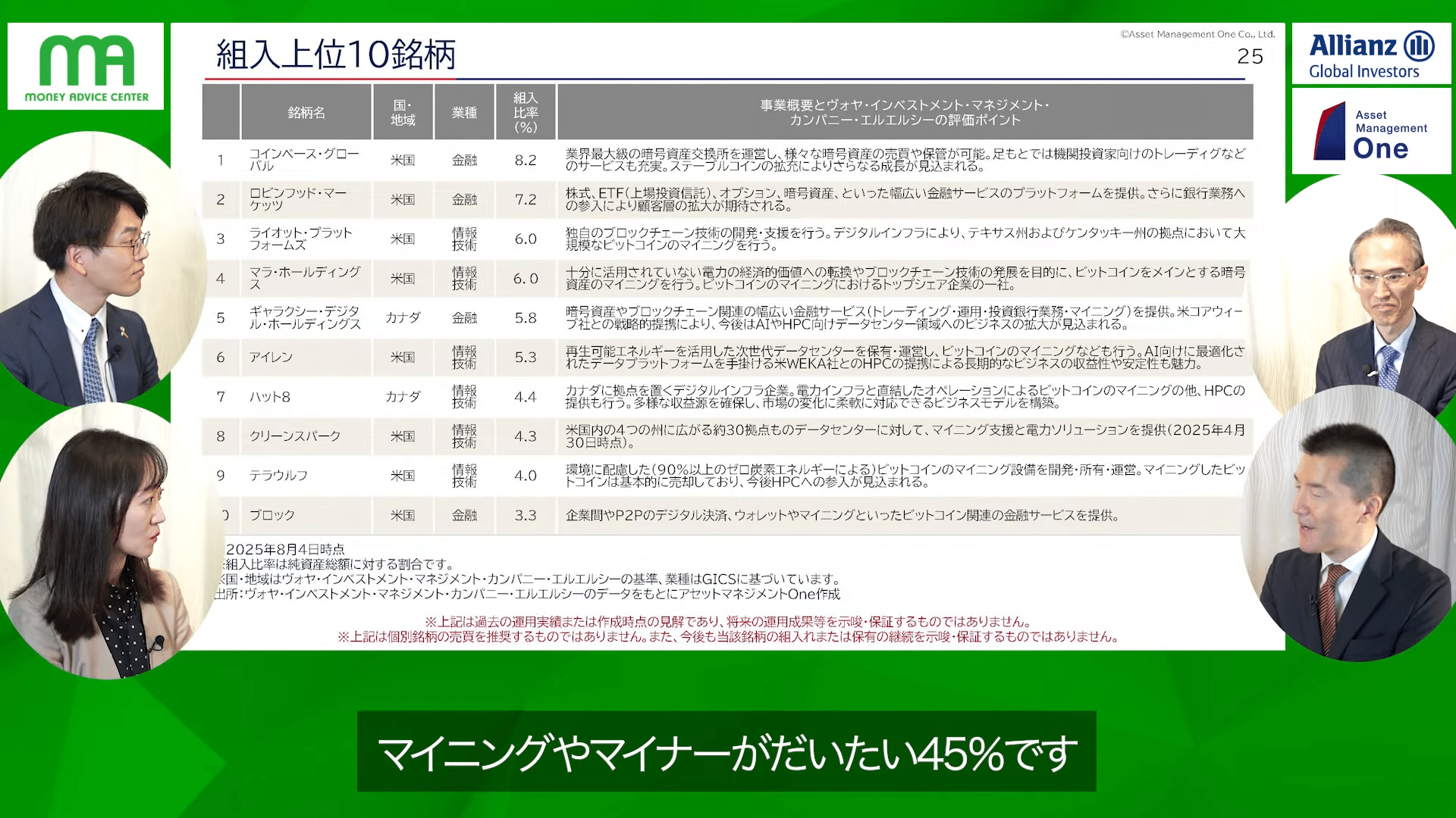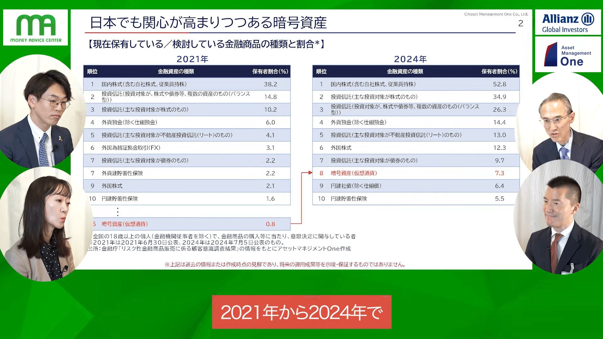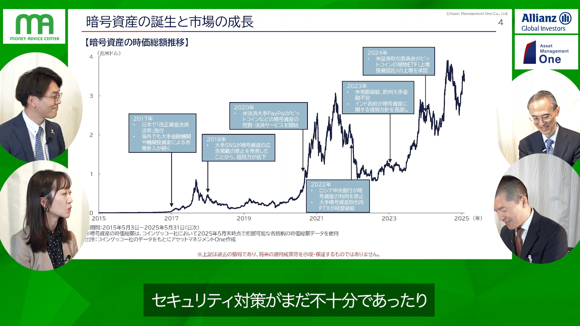 今回は、マネーアドバイスセンター株式会社のIFA(独立系ファイナンシャルアドバイザー)佐藤氏・川原氏、そしてアセットマネジメントOne株式会社の岸浦氏、さらに運用を担当するアリアンツ・グローバル・インベスターズの知見を交え、暗号資産の将来性と、それに投資するための新しい手段「シークレット・コード」について詳しく解説します。
